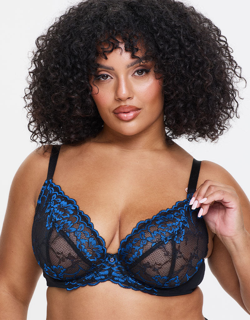 Get the latest colour of Ann Summers' Sexy Lace collection in this stunning Black/Blue combo. Made from a soft floral lace containing a minimum 50% recycled fibres and mesh that contains at least 70% recycled yarns, in black with pops of blue detail.