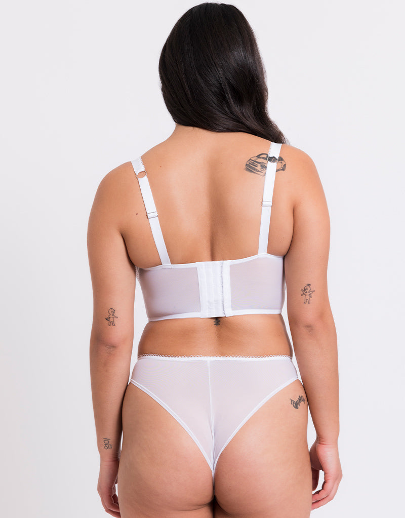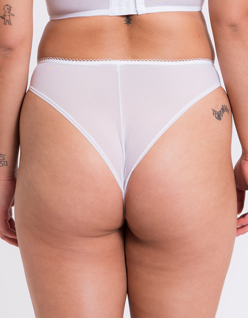 Curvy Kate's Gin Fizz brazilian brief is the perfect way to complete your set, in soft mesh and fishnet for a barely-there feeling. The low rise waist and cheekier rear keep it comfy and cute for all day wear.