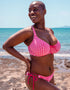 Curvy Kate's Holiday Check swimwear range is oh-so-sweet in a raspberry pink gingham, made from textured fabric that contains recycled fibres and gives a luxurious feel, fully lined with stretch for the perfect fit.