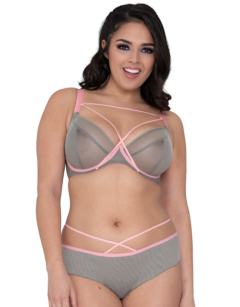 A Curvy Kate classic just got a playful update with Lifestyle X! Styled in a sheer khaki mesh, this supportive yet lightweight plunge bra gives amazing shape and lift through to a J cup. Contrasting pink trims and elastic harness detailing can be worn however you please, perfectly incorporating your bra into your outfit.