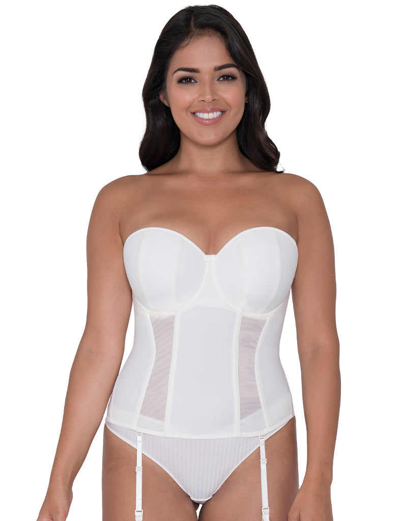 Your lingerie collection is complete with the Curvy Kate Luxe basque. The ultimate in versatility, this basque flaunts the same gravity-defying lift as the best-selling Luxe strapless bra, with a sleek bodice that hugs your curves. Soft vertical seams mould to your shape and move with your curves, offering a non-restrictive, comfortable fit. Finished with detachable suspenders and multi-way, removable straps.