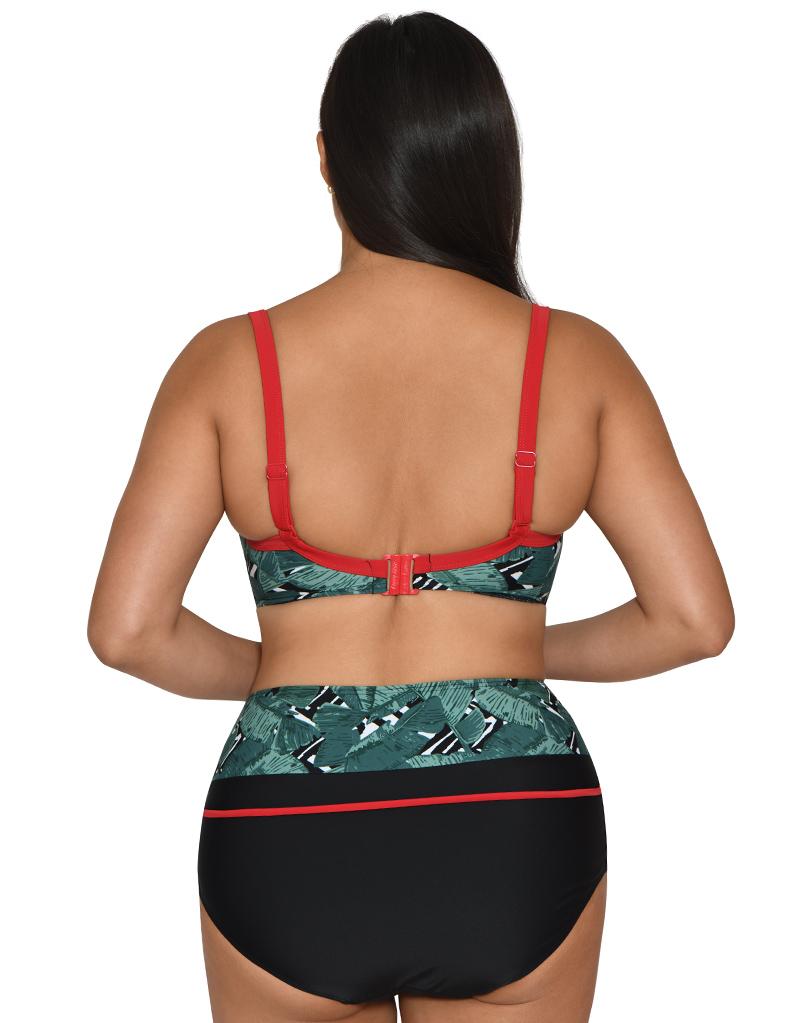 Keep it tropical in the Paradise Palm swim range from Curvy Kate. The padded balconette bikini top has foam lining in the cups to shape and support both in and out of the water, while underwires lift and hold fuller busts. Styled in a green abstract palm print with red piping and contrast details, finished with multiway convertible straps.