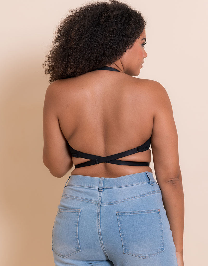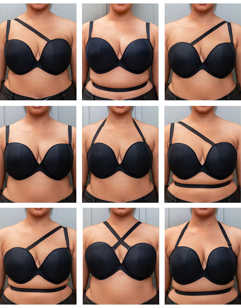 Innovative eyeletted fold over elastic on the cup neck edge lets you position the straps anywhere along the length using the swan hook attachment, with multiple points of attachment at the back wing too. Low back, halterneck, asymmetrical and otherwise tricky necklines are solved with one bra, allowing you to unlock the potential of all those summer outfits and party season styles!