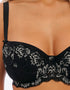Give your bust a boost with the stunning Aubree padded half cup bra from Fantasie. Styled in a Night Sky Black colourway, this gorgeous design showcases two-tone lace detailing with silvery shimmer for a luxe effect.