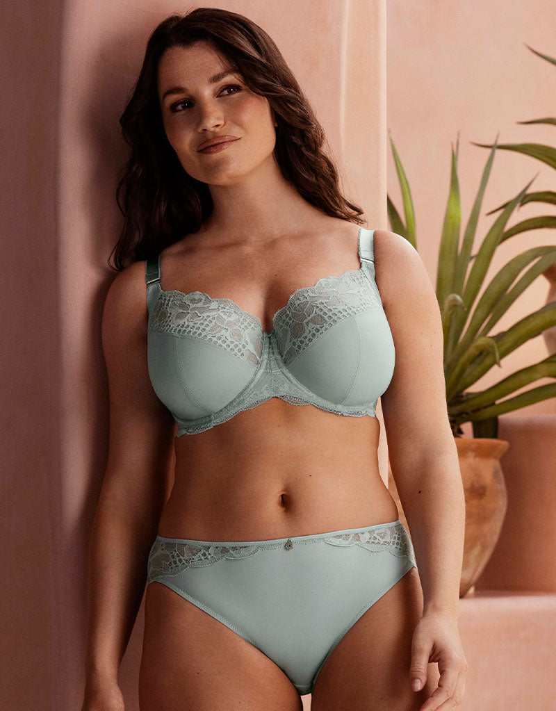 Say hello to your new favourite bra - Fantasie's Reflect side support bra! This mist blue colourway is light and sophisticated, making it easy to wear. Using the brand's bestselling side support shape with a stretch lace top cup it ensures superb fit, support and shape for D+ cup sizes - thanks to the 4-part cups with side panels and non-stretch bottom cup panels.