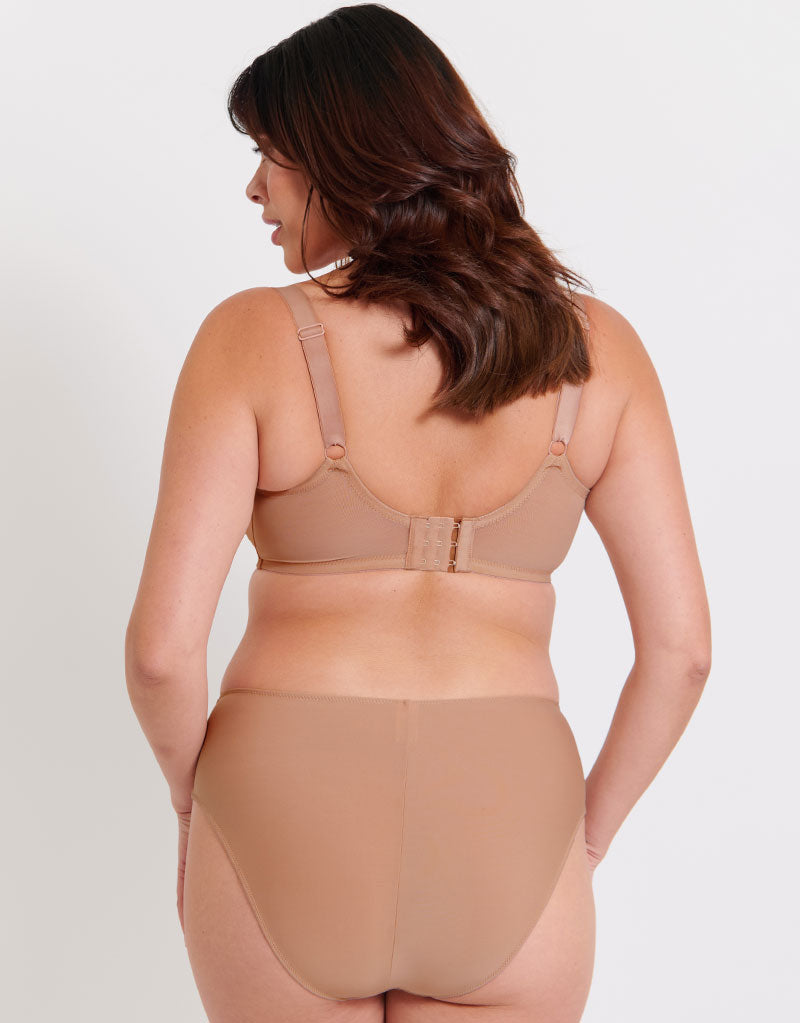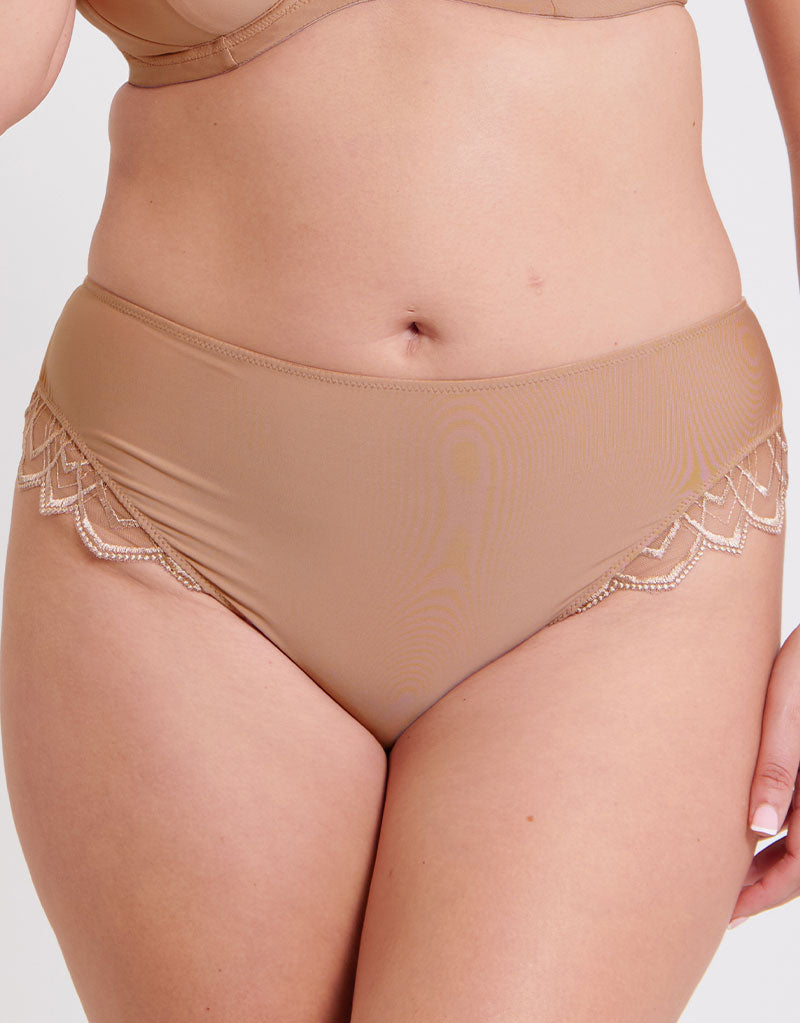 The Flirtelle Emilie Deco classic brief is perfect for every day in cafe au lait. With a fresh Art Deco inspired embroidered trim to the leg edge, this full brief shape offers good coverage and total comfort in soft microfibre fabrics.
