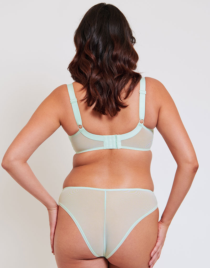 The Flirtelle Isla brazilian brief in Pale Mint is here to freshen up your day-to-day lingerie. Made from soft mesh with a feminine leaf-inspired pattern to the front panel, this lower coverage knicker still offers maximum comfort with a cheekier bottom cut.