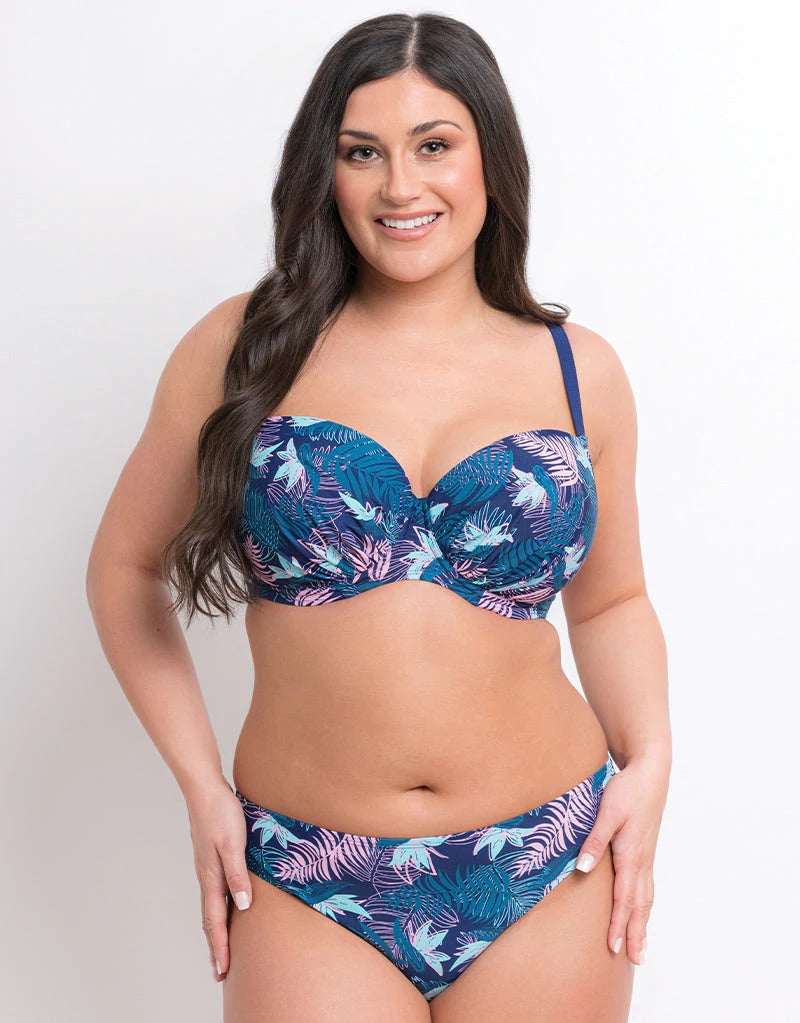 Soak up the sun in style with our Flirtelle Palm Bay swimwear range in trendy navy blues. The balconette bikini top features foam lining in the cups to lift and support larger cup sizes both in and out of the water, without losing shape.