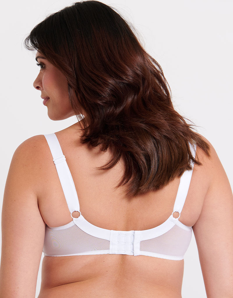 Flirtelle's Riley balcony bra is here in white, offering a fresh and modern look with stripe embroidery detail on the top cup. Fitting just like our bestselling Flirtelle Swirl, the 3-part cups are lined with mesh to provide everyday support, shape and coverage, with a smooth microfibre outer that feels buttery soft.
