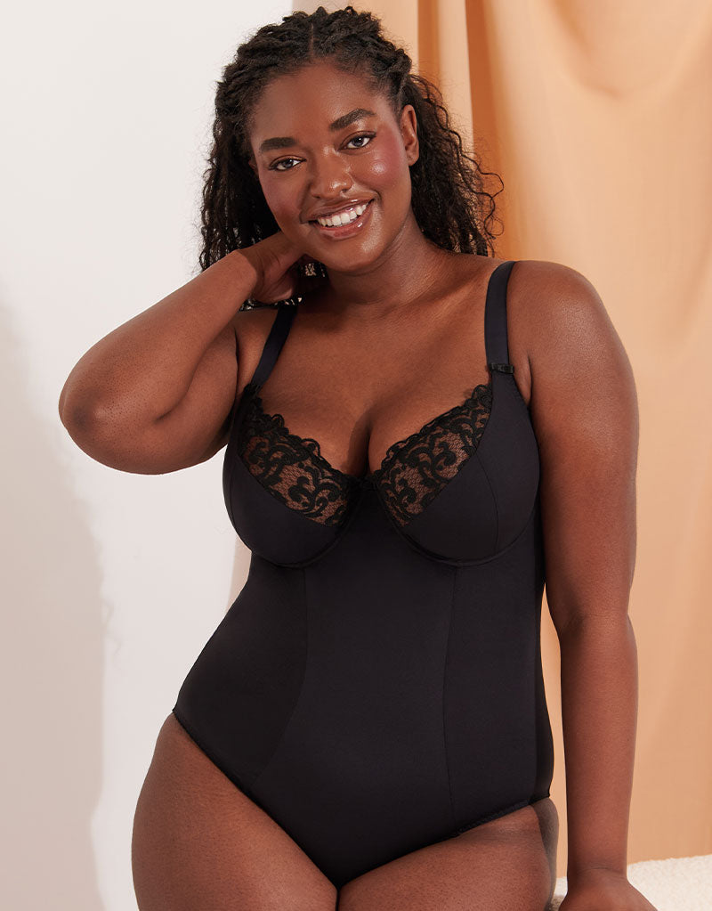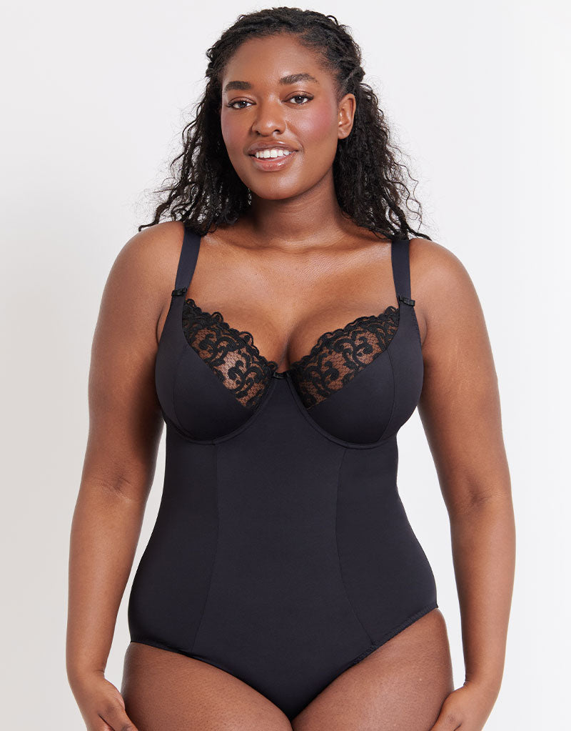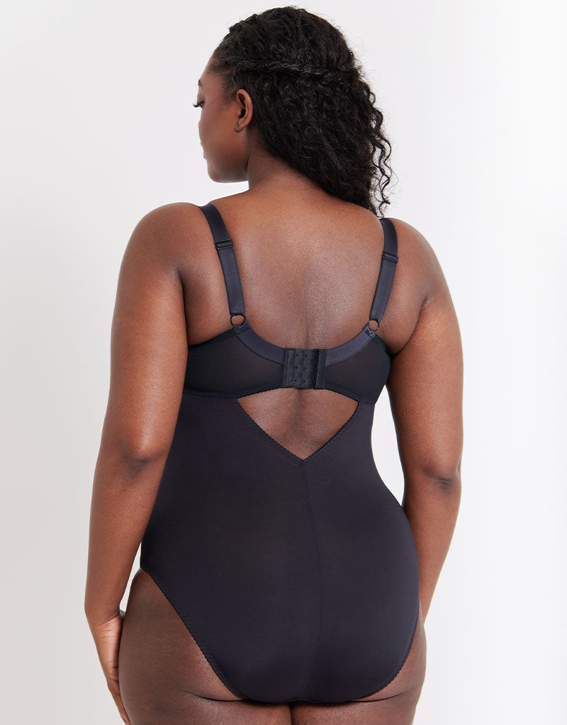 We know how much you love our Flirtelle Swirl balcony bra, so we've gone one step further and created our Swirl bodysuit! With the same great fit, uplift and support you know and love in F to K cups, in a super soft and smooth microfibre body that hugs your curves. Serve body and wear with your favourite jeans for an underwear-as-outwear look in easy to style black, or keep it underneath your dresses for a sleek silhouette.