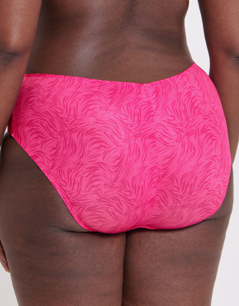 Our Flirtelle Swirl brief is gorgeous in a bold pink zebra print, giving a fresh take on this classic trend. The fuller brief cut is perfect for everyday comfort and coverage, in soft opaque fabrics and with elasticated edges for the ideal fit.