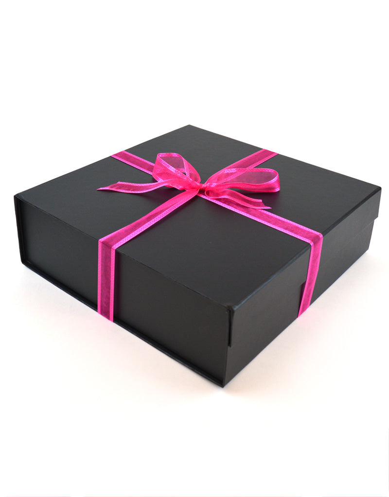 Leave the gift wrapping to us with this beautiful re-useable gift box. Your purchases will be hand wrapped in tissue and presented in a high quality, black box with gorgeous pink ribbon. So, why not make your gifts extra special this year?