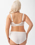 Introducing the Gorsenia Evia balconette bra in Cream. Opaque non-stretch bottom cups lift and support fuller busts, with delicate lace trims to finish. Cut in a simple 3-part balcony cup that gives moderate coverage with a projected shape and narrow underwires, perfect for everyday.