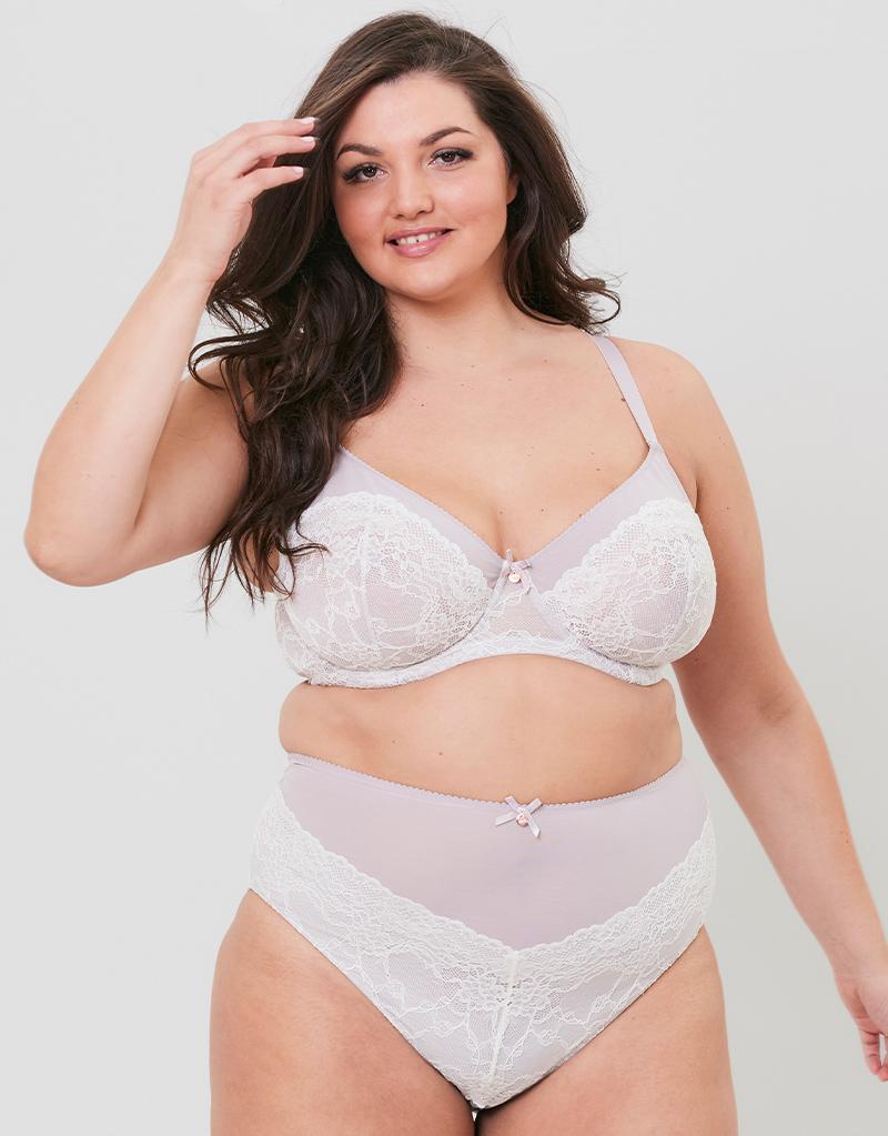 The Tonal Lace bra from Oola Lingerie is made to offer medium coverage in soft mesh and lace, with a simple cup construction that provides a natural shape with subtle uplift. Designed with fuller figures in mind, with soft straps and brushed hook-and-eye clasp to ensure a chafe-free fit.