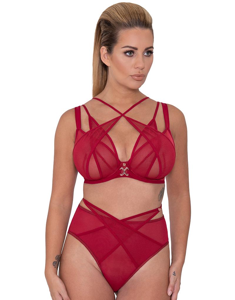 Turn up the heat with Scantilly's Black Magic plunge bra in a firey red! Darted, sheer mesh plunging cups give great support for DD+ cups, with sultry fishnet straps to encase your curves. Tease and tantalise by giving a sneaky peek under a low cut neckline. Oh - and we promise it isn't as hard to get on as it looks!