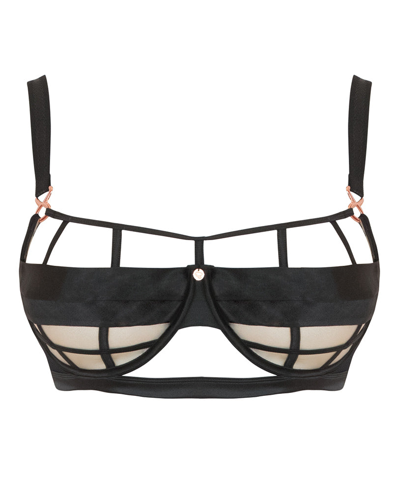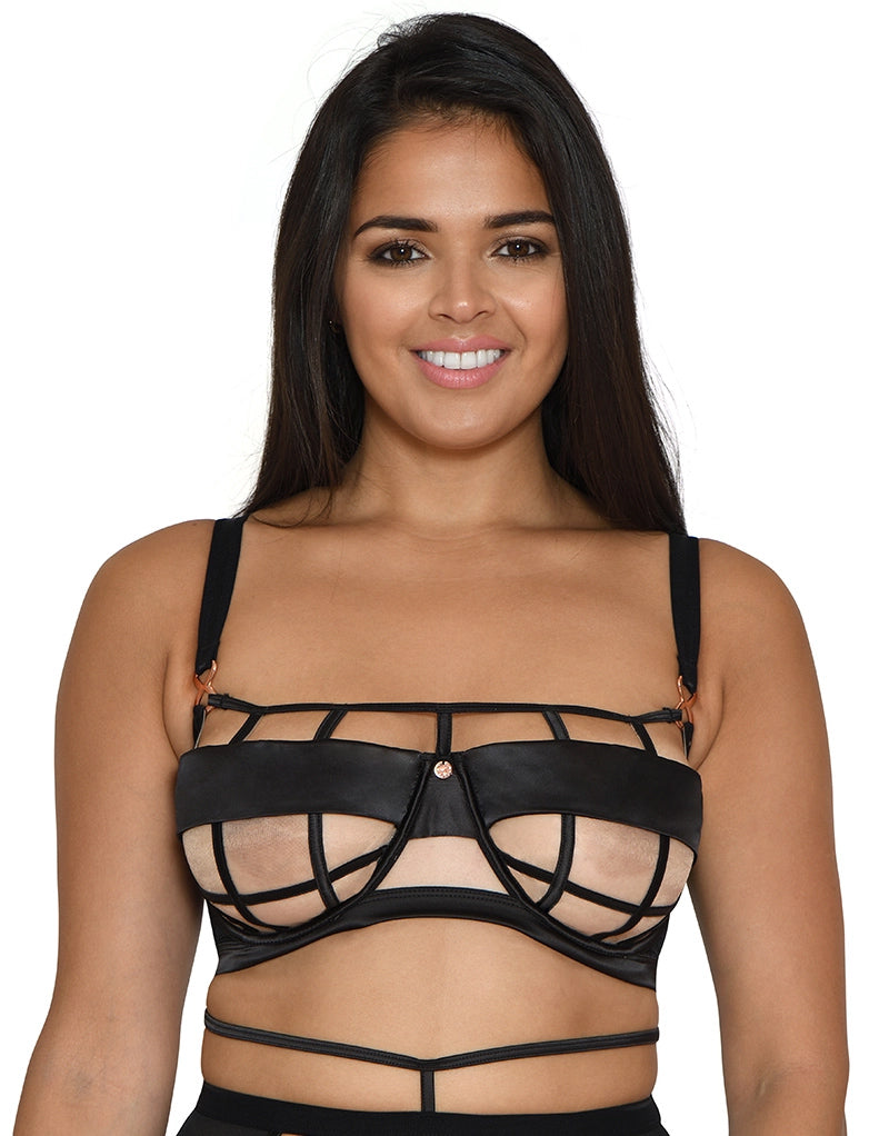 Explicit content ahead! The Scantilly by Curvy Kate Censored balconette bra is not for the faint heated. Encase your bust in black satin binding inspired by the censorship bar for a daring style. A sheer mesh in the bottom cups ensures this edgy style still offers that all-important support.