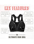 Non-slip, cushioned straps and seamless inner cups work alongside the moisture-wicking, breathable fabric to provide friction-free comfort, with a double back fastening that fully opens for ease of getting it on and off.